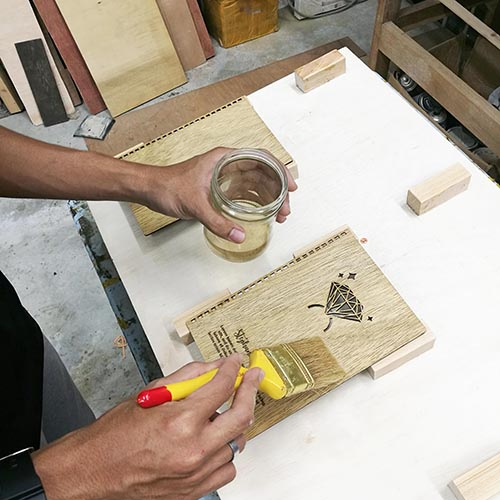 Plywood products can go through a finishing process to improve their appearance and durability. Finishing not only enhances the natural beauty of the wood grain but also protects the surface from moisture, scratches, and wear. Depending on the design, different finishes can be applied — such as clear varnish for a glossy, polished look, matte coating for a softer and natural feel, or wood stain to deepen the colour and highlight the texture. Some products are also sealed with eco-friendly oils or water-based coatings to maintain an environmentally responsible finish. For creative gifts, the choice of finish is important, as it affects both the look and touch of the final product. A smooth, well-finished surface not only feels pleasant to hold but also gives each plywood gift a professional and lasting quality.