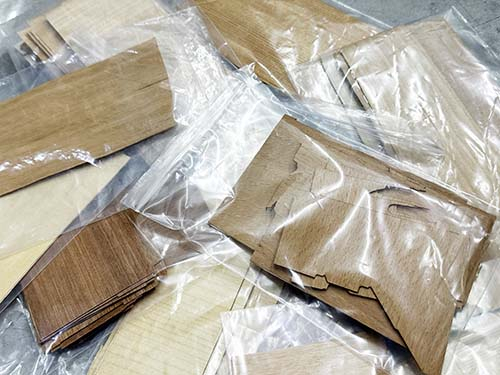 We take sustainability a step further by keeping and sorting even the smallest pieces of veneer left over from our internal projects. Instead of discarding these offcuts, we carefully organize them by size, thickness, and tone so they can be reused creatively. If your project is small, this is an excellent way to make use of these remnants while still achieving a natural and premium look. For clients who don’t mind a mix of assorted veneer species, this approach offers a unique aesthetic—each piece telling its own story through different grains, colors, and textures. It’s a meaningful way to give new life to every fragment of wood, reduce waste, and create one-of-a-kind gifts that celebrate both craftsmanship and environmental responsibility.