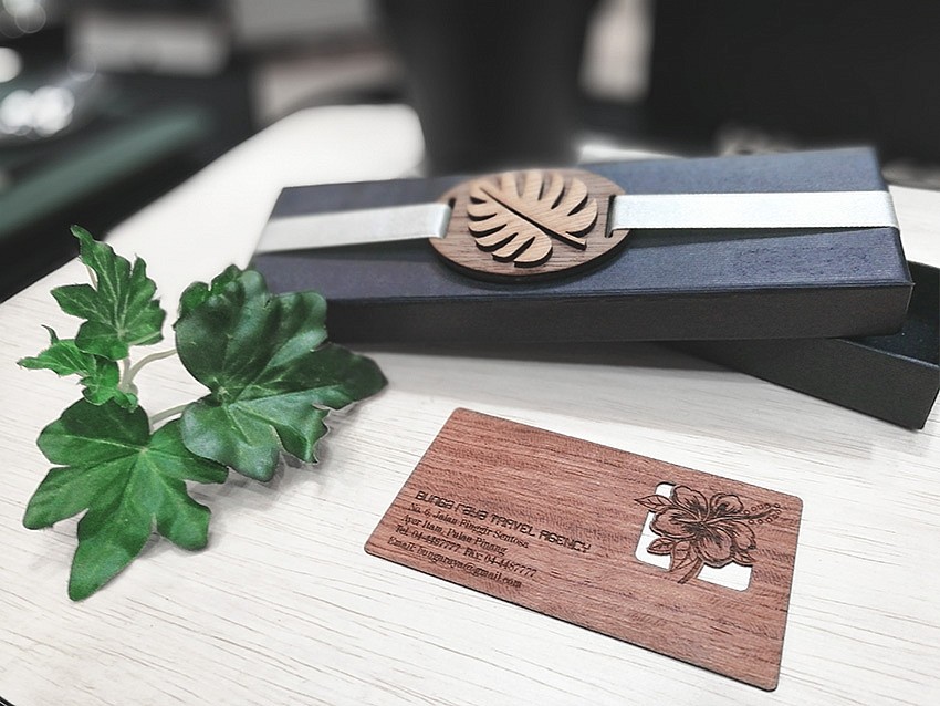 An impressive wooden name card made from veneer will surely impressed someone and will make them remember of you. Be special and be remembered! This is a name card that will never be thrown away. You can also turn the card to be a membership cards, rewards cards, warranty card etc.